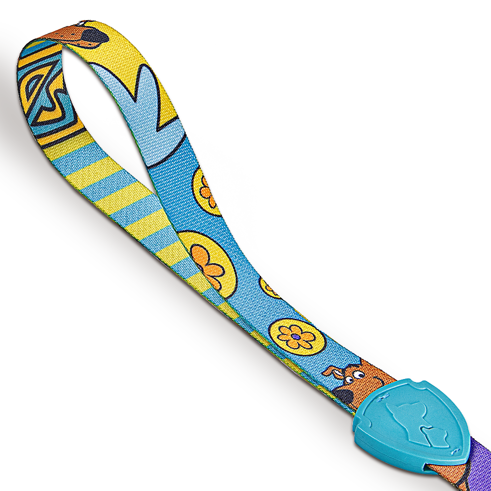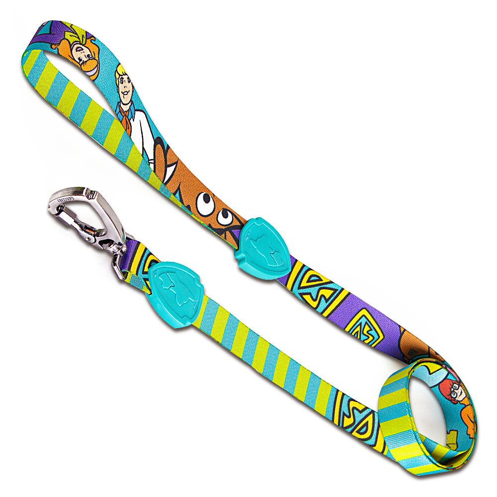 De um lado, a guia exibe as expressões engraçadas do Scooby e seus amigos, com detalhes que remetem diretamente ao desenho. Do outro, as listras verdes e azuis, combinadas com logos espalhados pela fita, complementam o visual divertido e cheio de estilo. Confeccionada em poliéster super macio e resistente, o mesmo material utilizado em cintos de segurança, a guia oferece não apenas durabilidade, mas também o máximo de conforto.