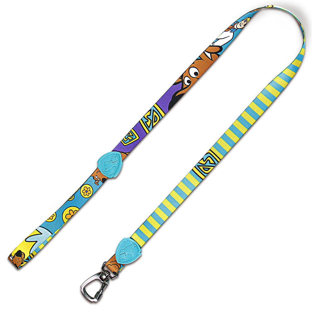 De um lado, a guia exibe as expressões engraçadas do Scooby e seus amigos, com detalhes que remetem diretamente ao desenho. Do outro, as listras verdes e azuis, combinadas com logos espalhados pela fita, complementam o visual divertido e cheio de estilo. Confeccionada em poliéster super macio e resistente, o mesmo material utilizado em cintos de segurança, a guia oferece não apenas durabilidade, mas também o máximo de conforto.