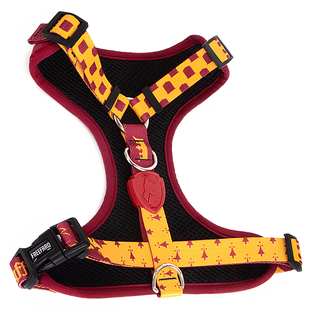 O Peitoral Air Para Cães Harry Potter Grifinória é um acessório especial para pets que compartilham da bravura e espírito aventureiro que caracteriza a casa Grifinória. Inspirado nas cores escarlate e dourado, símbolo do fogo e da coragem, o peitoral traz consigo uma estampa que remete à força e lealdade dos membros da casa mais destemida de Hogwarts. Esta peça foi desenvolvida pela FreeFaro em uma parceria exclusiva com a Warner Bros., oferecendo um produto licenciado que leva a magia do universo Harry Potter diretamente para o seu pet.