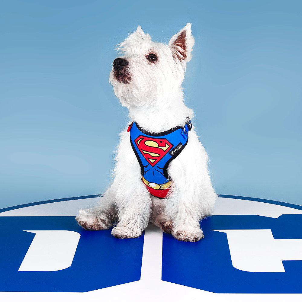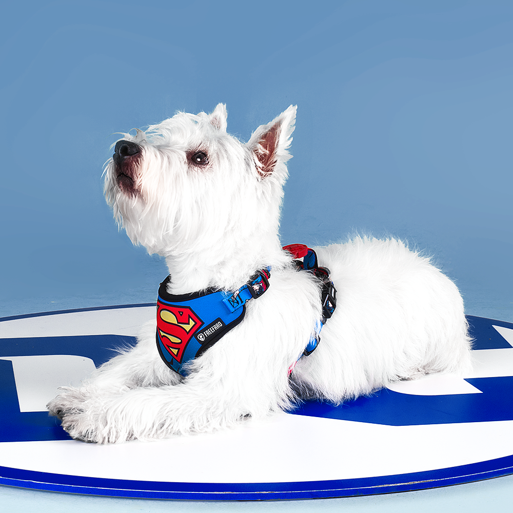 O fecho, equipado com engate rápido e quatro pontos de segurança, facilita o uso e oferece uma fixação segura. Totalmente ajustável, o Peitoral Air Superman adapta-se a cães de diferentes portes e raças, sendo o acessório perfeito para fãs que querem partilhar a energia do Homem de Aço em cada passeio com seu melhor amigo.