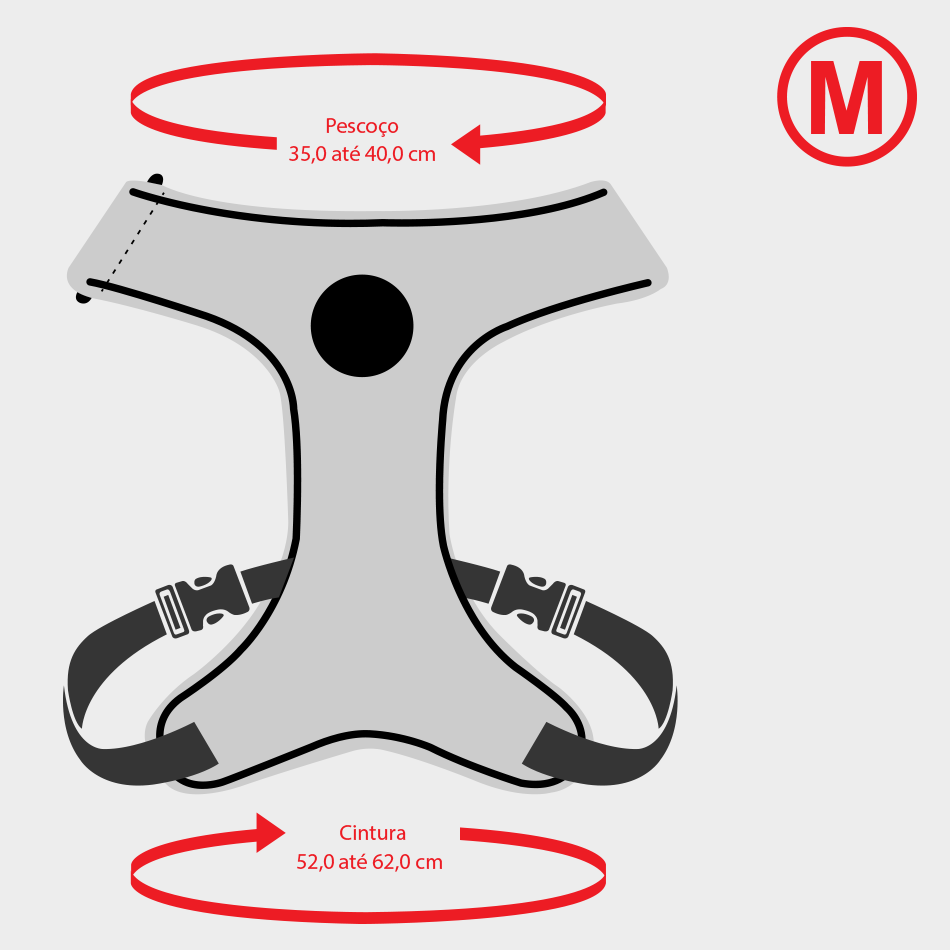 Seu design ajustável possibilita a regulagem tanto na região do pescoço quanto na barriga, proporcionando um encaixe seguro e confortável para cães de diversos tamanhos. Equipado com fechos de alta resistência e sistema de segurança, o peitoral é prático e fácil de colocar, ideal para os tutores que buscam simplicidade sem abrir mão da qualidade.