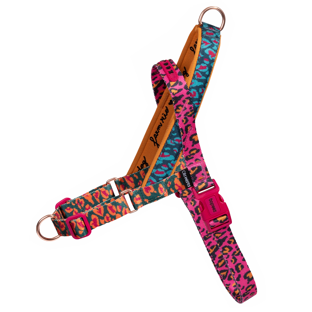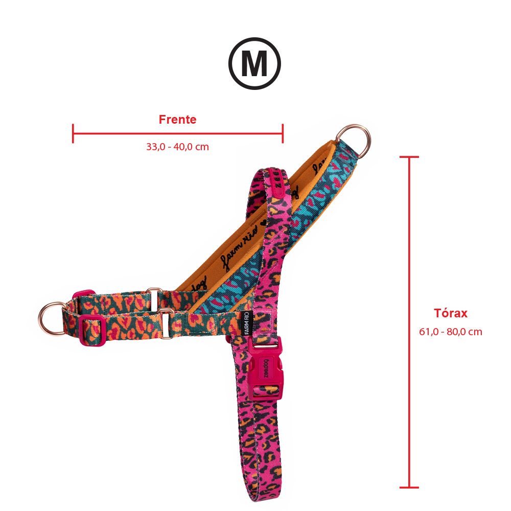 A estrutura do SofterWalk é totalmente regulável, garantindo um encaixe confortável e seguro para cães de diferentes portes, sem apertar ou causar desconforto. Seu Super Fecho, equipado com trava de segurança em quatro pontos, assegura máxima proteção, evitando aberturas acidentais. Além disso, a alça de controle é forrada para trazer ainda mais conforto ao tutor, ao mesmo tempo em que o bordado exclusivo da colaboração Farm Rio e Zee.Dog adiciona um detalhe sofisticado e cheio de estilo.